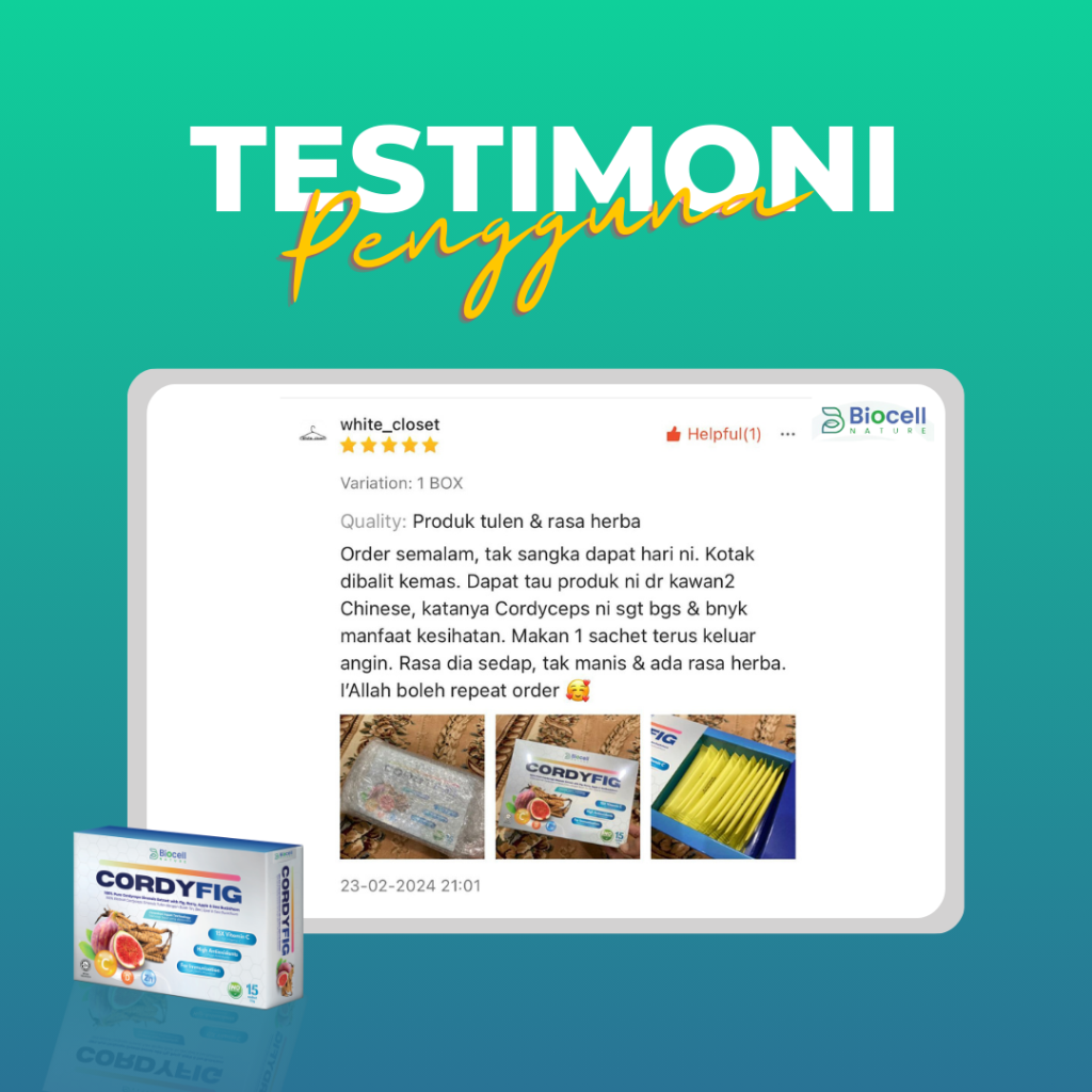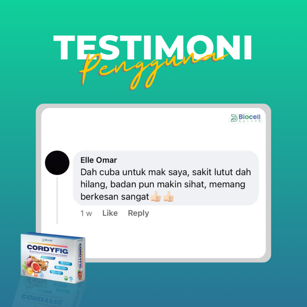 “Hasil Kajian Selama 45 Tahun, akhirnya Cordyfig berjaya dihasilkan, satu satunya produk pertama di Malaysia yg terbukti dapat merawat pelbagai masalah penyakit dan mengembalikan kesihatan.”